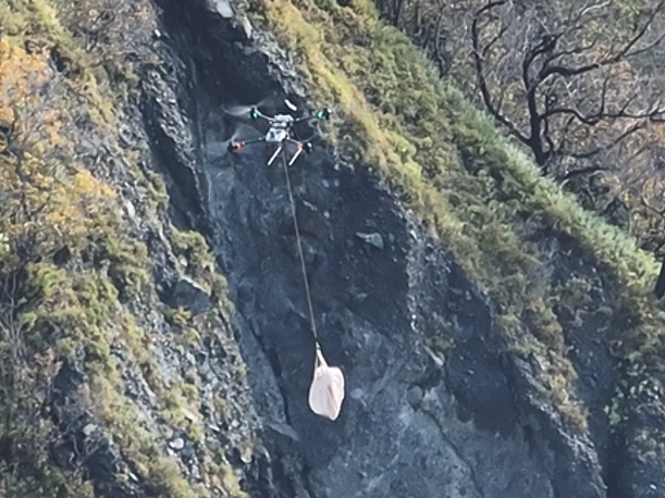 当社では、山間部でインフラ整備用の部材を運ぶために運搬ドローンを使用しております。特に、これまで作業員が人力で運ぶ必要のあったエリアでは、体力的な負担が大きく、作業効率や安全面も課題となっておりました。